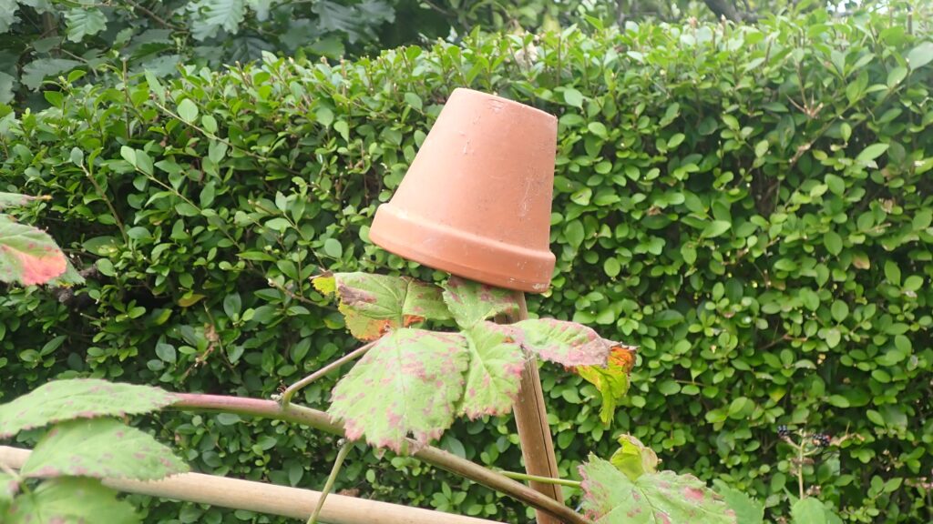 Nu kan ik weer veilig water halen, wieden, plukken en snoeien. De moraal: tuinieren is levensgevaarlijk. Beveilig de stokken in je tuin.